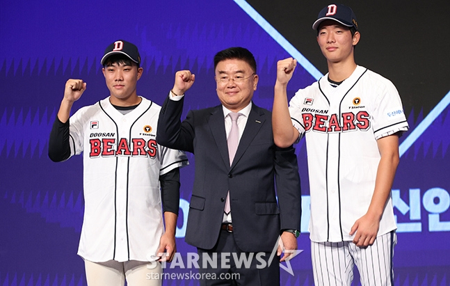 그리고 두산은 최승용의 빈자리를 서울고 출신의 우완 투수 최민석(19)이 메우는 것으로 스타뉴스 취재 결과 확인됐다. 중대초-양천중-서울고를 졸업한 최민석은 2025 신인 드래프트에서 2라운드 전체 16순위로 두산 베어스 유니폼을 입었다. 입단 계약금은 1억 5000만원. 188cm, 84kg의 체격 조건을 자랑하는 최민석은 150km에 달하는 빠른 속구와 정확한 제구력이 강점이다.