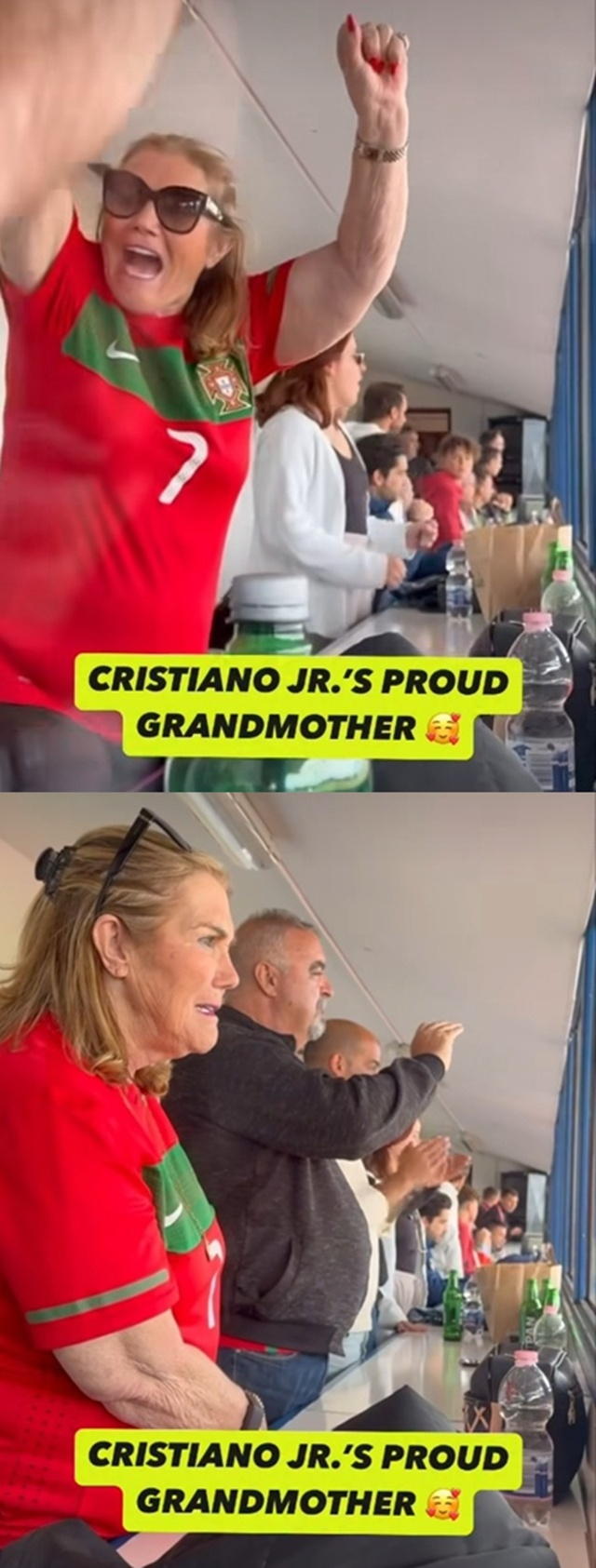 호날두 주니어가 골을 넣자 관중석에서 다른 사람들보다 더 기뻐하는 이가 있었다. 바로 호날두의 어머니 마리아 돌로레스 아베이로. 호날두 주니어의 할머니이기도 한 아베이로는 손자가 득점에 성공하자 두 손을 번쩍 들고 포효했다. 이 모습이 담긴 영상을 축구전문 433이 20일(한국시간) 소개했다.