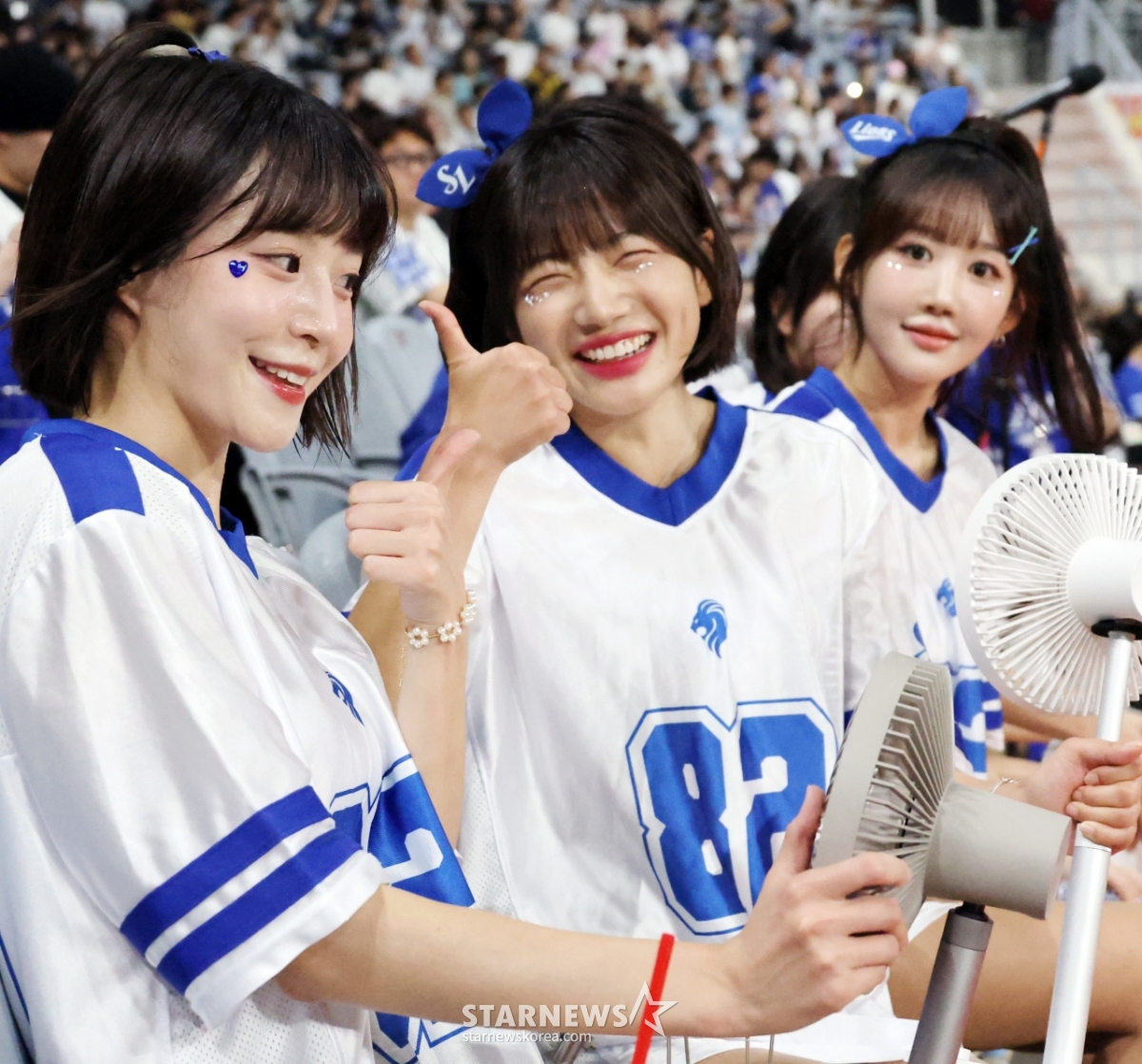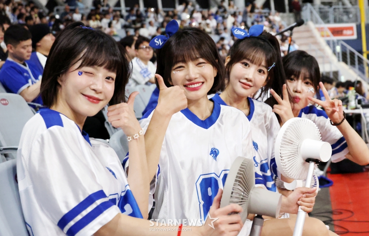 땀에 흠뻑 젖은 삼성치어리더들이 20일 고척스카이돔에서 열린 2025KBO리그 키움히어로즈와 삼성라이온즈의 경기에서 카메라를 향해 포즈를 취하고 있다. 왼쪽부터 박혜인, 박소영....2025.05.20.