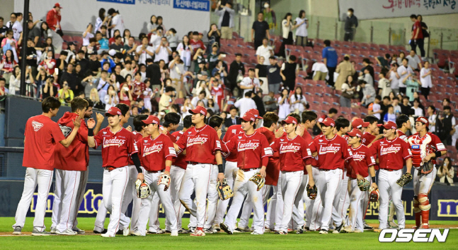 이날도 전영준이 5회 1사까지 잘 버텼고 이후 박시후(⅓이닝), 이로운(1⅓이닝)이 실점 없이 이닝을 소화한 뒤 필승조 트리오인 노경은, 김민, 조병현(이상 1이닝)이 7,8,9회를 깔끔히 막아내 승리를 거뒀다.