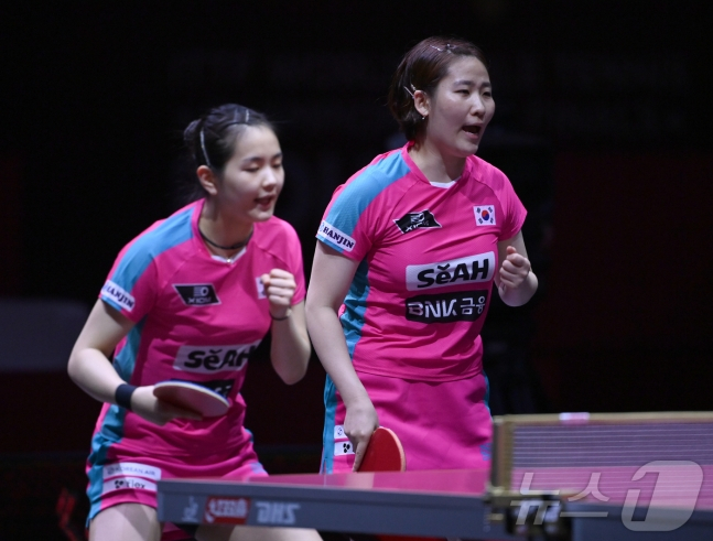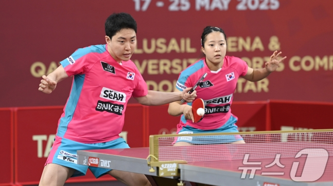 신유빈은 20일(현지시간) 카타르 도하 카타르 대학교 스포츠 콤플렉스에서 열린 2025 국제탁구연맹(ITTF) 세계선수권대회 여자복식 16강전에서 유한나(포스코인터내셔널)와 조를 이뤄 아넷 코프먼-시오나샨(독일)조에 게임 스코어 3-1(11-8, 11-3, 4-11, 11-6)로 승리했다.