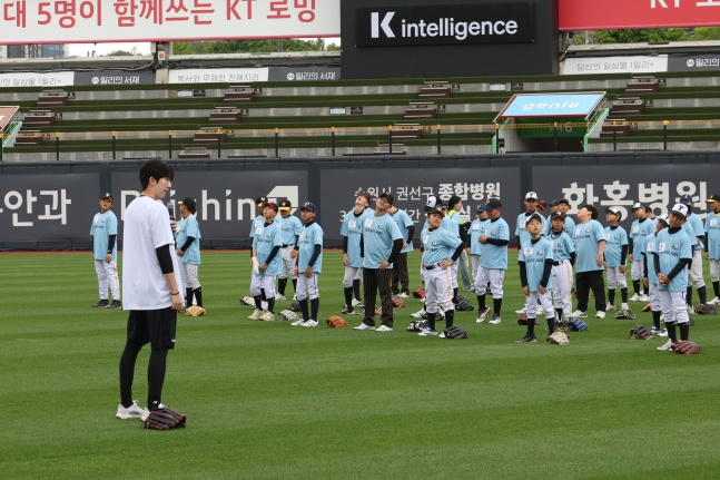 이날 클리닉에는 수원 지역 초등학교 유소년 선수 100여명이 참가했다. KT 소속 선수들이 투수, 포수, 내야수, 외야수 등 포지션별로 나뉘어 실전 위주의 맞춤형 레슨을 제공했다.