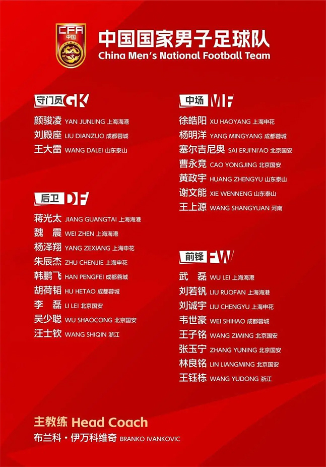 브란코 이반코비치(크로아티아) 중국 대표팀 감독은 22일 27명의 2026 FIFA 북중미 월드컵 아시아 3차 예선 C조 인도네시아·바레인전 명단을 발표했다. 중국 현지에서 '생사의 갈림길', '생사전' 등의 표현을 활용할 정도로 중국축구의 운명이 걸린 2연전이다.