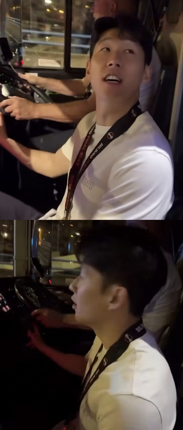 '캡틴' 손흥민(33·토트넘)의 우승 세리머니는 구단 버스 안에서도 이어졌다.