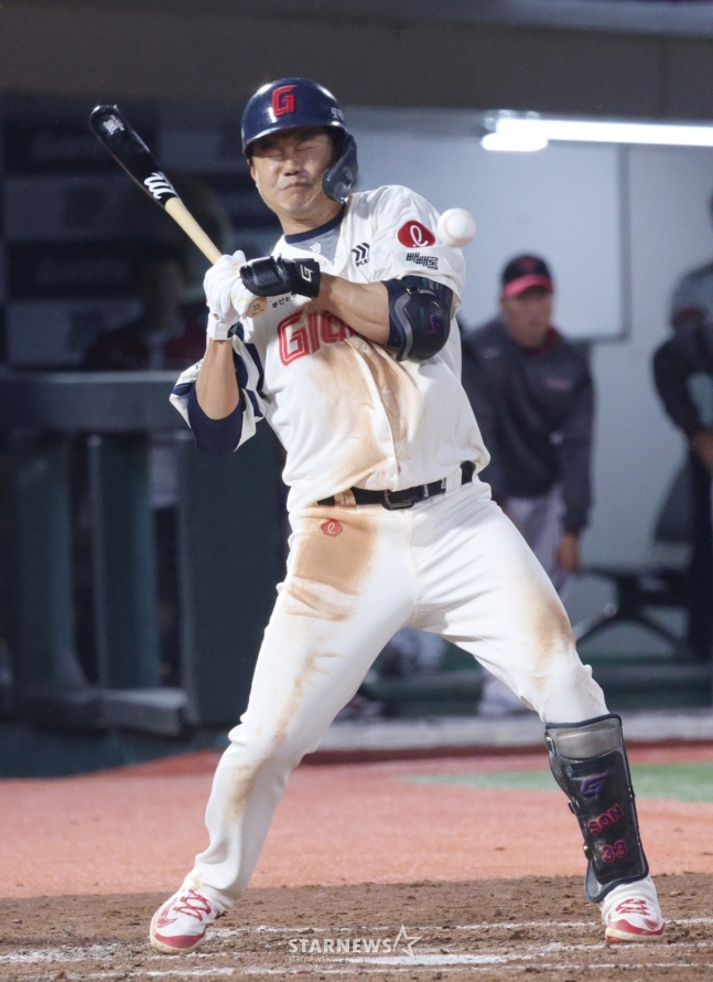 롯데는 3회말 2-3으로 뒤지던 상황에서 전준우의 주루사로 인해 2아웃이 됐지만, 윤동희와 전민재의 연속 안타에 이어 유강남이 사구로 출루해 만루를 만들었다. 여기서 등장한 손호영은 LG 선발 코엔 윈과 볼카운트 2-2에서 몸에 맞는 볼을 얻어내 밀어내기 타점을 올렸다. 손호영이 찬스를 이어주면서 롯데는 장두성의 2타점 적시타로 5-3 역전에 성공했다.