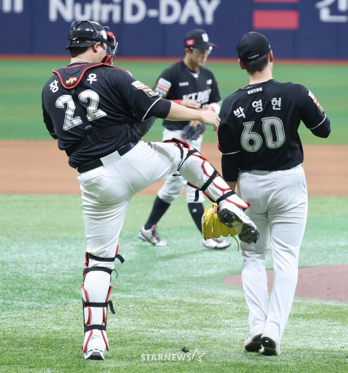 스포츠야구[포토] 장성우 똥킥 '작가는 싫다 했지'발행 : 2025.05.25 ・ 16:51수정 : 2025.05.26 ・ 10:51고척=김진경 대기자2025 신한 SOL Bank KBO리그 키움 히어로즈 대 KT 위즈 경기가 25일 서울 고척스카이돔에서 열렸다.KT 마무리 박영현이 경기를 매조지한 후 포수 장성우에게 아슬아슬한 상황에 대한 대가를 치르고 있다<저작권자 © 스타뉴스, 무단전재 및 재배포 금지>프로야구KBOKT_위즈이강철_감독홍원기_감독키움_히어로즈추천 기사김진경 대기자기자홈좋아요 스포츠-야구의 인기 급상승 뉴스스포츠-야구의 최신 뉴스