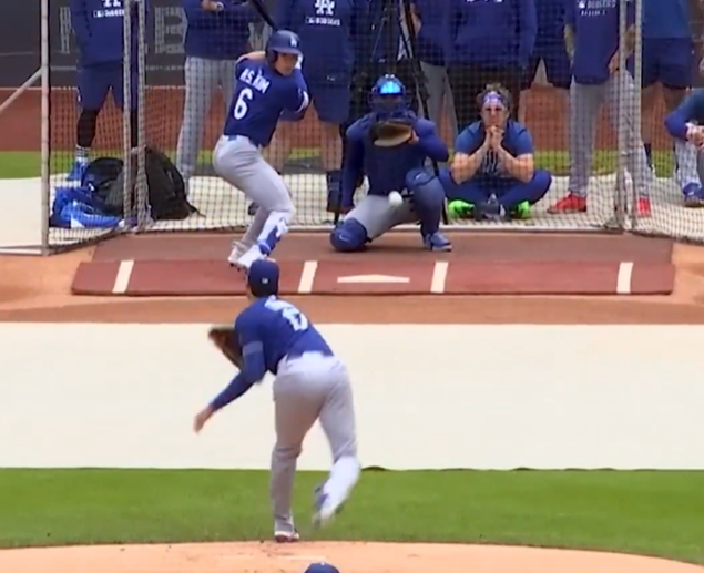 김혜성(26)이 팀 동료 오타니 쇼헤이(31·이상 LA 다저스)와 라이브 피칭 맞대결에서 3루타성 타구를 터트렸다. 이날 오타니의 최고 구속은 시속 97마일(약 156㎞)까지 나왔다.
