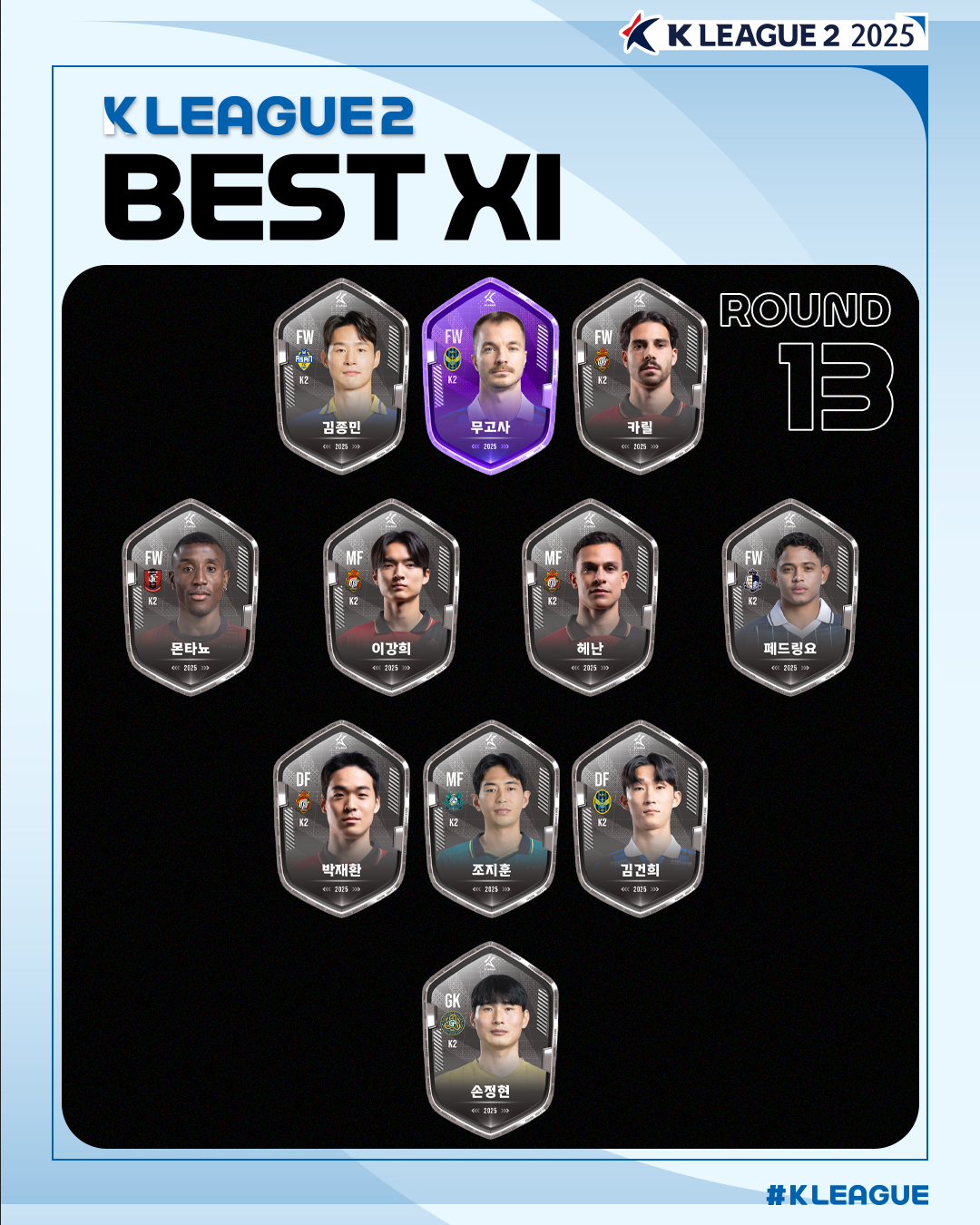 하나은행 K리그2 2025 13라운드 MVP는 인천 유나이티드 무고사가 차지했다.