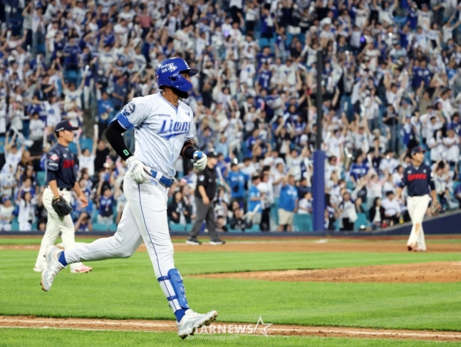 롯데 내야진이 전진수비를 한 가운데, 김성윤은 내야 큰 바운드로 3루수 키를 넘기는 이른바 '볼티모어 촙'으로 안타를 터트리면서 한 점을 달아났다. 이어 디아즈가 김진욱의 몸쪽 슬라이더를 공략, 오른쪽 담장을 넘어가는 시즌 21호 투런포를 폭발시키면서 점수는 7-1까지 벌어졌다. 이로써 디아즈는 한미일 1군 리그 통틀어 홈런 1위를 지키게 됐다.