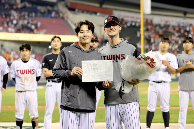 경기 종료 후 LG 선수단은 패배에도 그라운드로 나와 팬들 앞에서 윈의 고별식을 열어줬다. 주장 박해민이 선수단을 대표해 사진 액자와 윈이 처음으로 승리 투수가된 5월 4일 SSG전 기록지를 전달했다. 코팅된 기록지에는 선수단 한명 한명이 윈을 응원하는 메세지를 직접 적어 감동을 안겼다.