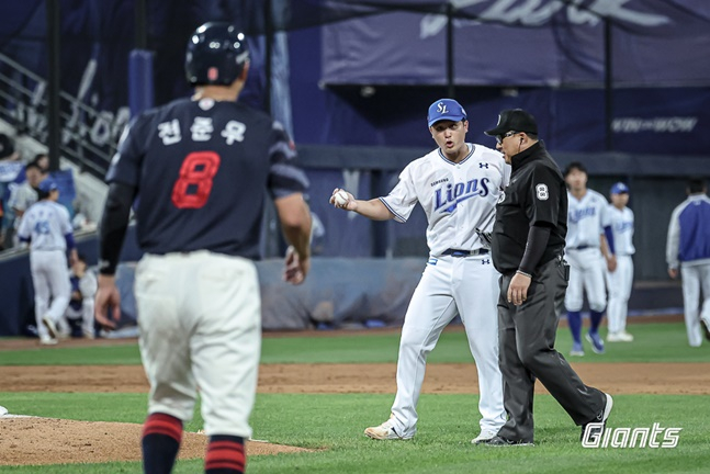 삼성도 타선이 찬스를 살리지 못하기는 마찬가지였다. 1회부터 주자 2명이 나갔지만 디아즈와 강민호가 범타로 물러나 득점에 실패했다. 4회에는 1아웃 이후 강민호가 2루타로 출루했지만, 류지혁의 투수 땅볼 때 강민호가 3루에서 런다운에 걸려 아웃되면서 찬스를 날렸다.