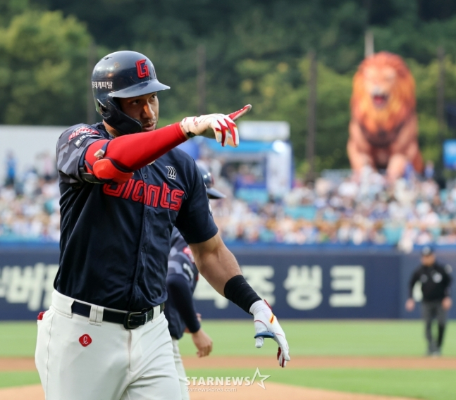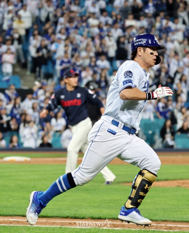 흔들린 박세웅은 디아즈에게 볼넷을 내주며 1, 2루 위기를 자초했다. 여기서 강민호가 우익수 옆으로 휘어나가는 2루타를 터트리면서 주자 2명을 모두 홈으로 불러들였다.