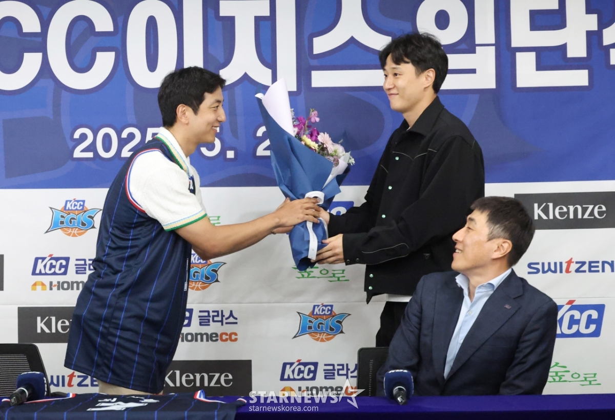 스포츠일반[포토] 이상민 '허씨 형제 달달하구만'발행 : 2025.05.29 ・ 15:07신사동=김진경 대기자광고삭제부산 KCC이지스 자유계약선수(FA) 허훈 입단 기자회견이 29일 오후 서울 강남구 KBL 센터에서 열렸다.허훈(왼쪽)이 허웅에 꽃다발을 받고 있다.허훈의 입단으로 KBL 역대 4번째 한 팀서 뛰는 형제가 탄생했다. 허훈은 형 허웅과 함께 다음 시즌 우승컵을 노린다.<저작권자 © 스타뉴스, 무단전재 및 재배포 금지>프로농구KBLKCC_이지스허웅허훈이상민_감독추천 기사김진경 대기자기자홈좋아요 스포츠-일반의 인기 급상승 뉴스스포츠-일반의 최신 뉴스