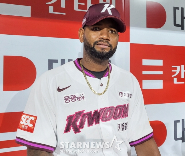 알칸타라는 30일 서울 고척스카이돔에서 두산과 2025 신한 SOL뱅크 KBO리그 홈경기를 앞두고 취재진과 만나 "일단 한국에 돌아오게 돼 너무 기쁘고 나도 그렇고 가족들도 전부 한국을 좋아하기 때문에 돌아오게 돼 기쁘다"고 밝혔다.