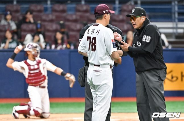 '그라운드의 신사' 홍원기 키움 히어로즈 감독이 체크 스윙 판정에 격렬하게 항의하다가 퇴장을 당했다.