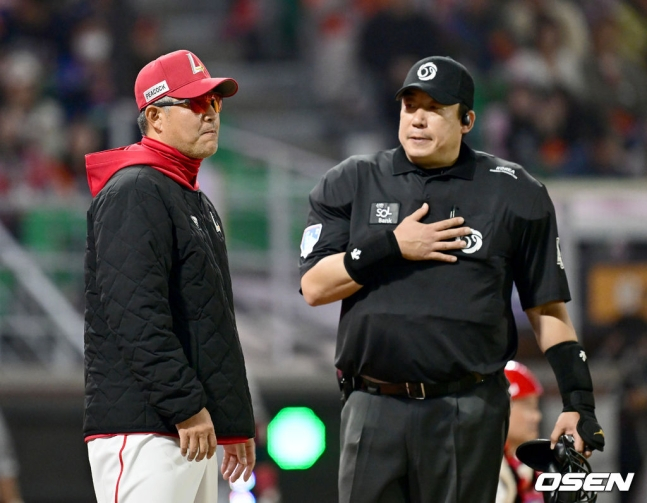 하지만 이 장면 직후 이숭용 감독은 더그아웃을 박차고 항의했다. 그물망에 공을 닿았기 때문에 파울이 아니냐는 것이었다. 이숭용 감독은 직접 그물까지 잡으며 항의했다. 하지만 판정은 바뀌지 않았다. 여기서 SSG가 추가점을 냈다면 경기 흐름은 바뀔 수도 있었을 터. 결국 경기는 접전 끝에 롯데의 6-5 승리로 끝났다.