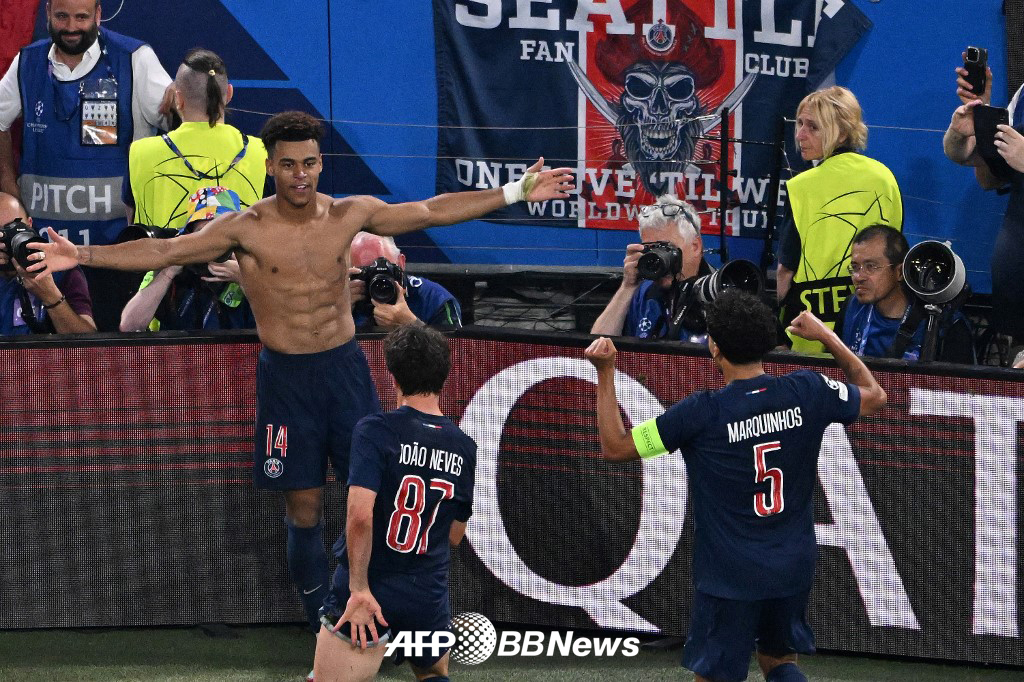 이후 PSG가 기어코 5번째 골까지 터뜨렸다. 교체 투입된 세니 마율루가 후반 42분 아크 정면에서 페널티 박스로 파고든 뒤, 브래들리 바르콜라의 침투 패스를 왼발 슈팅으로 연결해 골망을 흔들었다. 벤치에 앉은 PSG 선수들까지 그라운드로 뛰어들어 사실상 우승 확정골 순간을 즐겼다.