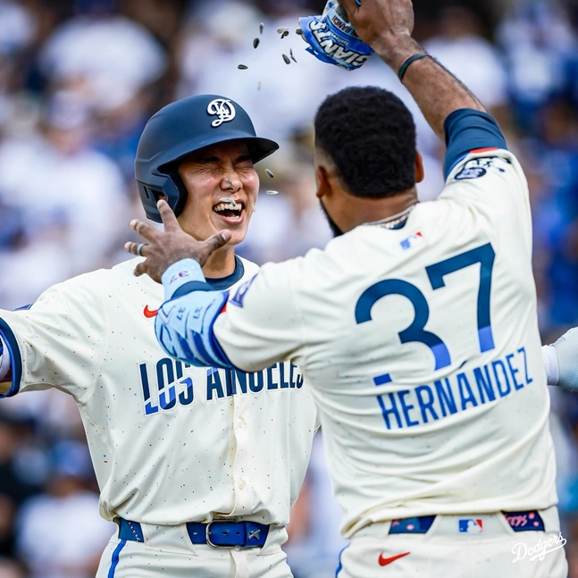 이후 타석에서도 훨훨 날았다. 5회말 선두 타자로 나선 김혜성은 바뀐 우투수 마크 레이터의 가운데로 몰리는 시속 94.2마일(151.6㎞) 스플리터를 공략, 좌전 안타를 날렸고 오타니 쇼헤이의 안타 때 3루로 내달린 뒤 프레디 프리먼의 2루타 때 가볍게 득점했다.