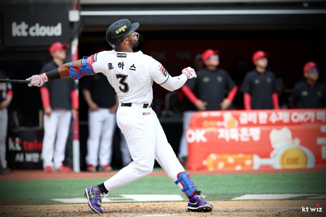 KT 위즈 효자 외인 멜 로하스 주니어(35)가 KBO 리그 역대 최고 외국인 타자 통산 최다 홈런까지 단 3개만을 남겨두고 방망이를 뜨겁게 달궜다.