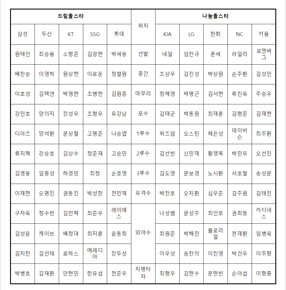 별들의 잔치에 초대를 받기 위한 구단별 팬 투표 명단이 공개됐다.