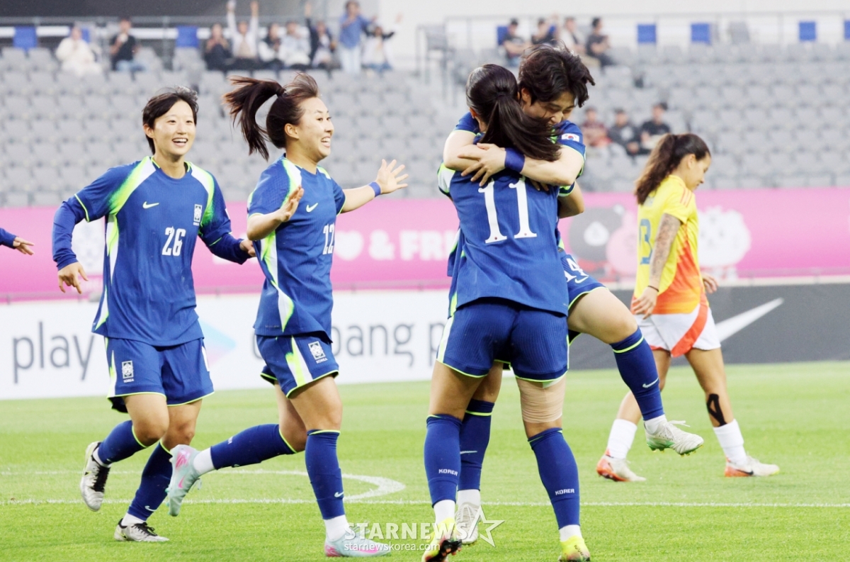 정민영은 2일 용인 미르스타디움에서 열린 여자축구 국가대표 평가전 콜롬비아전에 미드필더로 선발 출전, 킥오프 휘슬이 울린 지 84초 만에 선제골을 넣었다. 그는 문전 혼전 이후 아크 정면으로 흐른 공을 왼발 논스톱 슈팅으로 연결해 상대 골망을 흔들었다. A매치 데뷔전 데뷔골의 순간. 스스로도 믿을 수 없다는 듯 입을 막던 그는 이내 동료들과 함께 기쁨을 나눴다.
