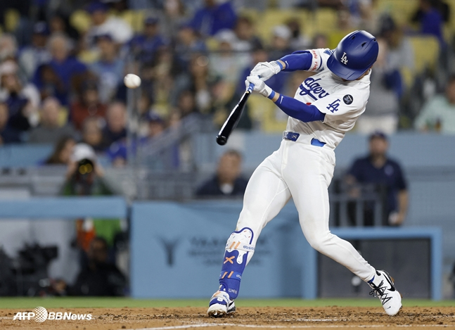 3회말 1사 주자 없는 상황에서 1루 땅볼로 물러난 김혜성은 5회말 2사 1루 상황에서 두 번째 타석을 맞았다. 여기서 메츠 선발 폴 블랙번(32)이 2볼-2스트라이크 상황에서 던진 시속 89.1마일(약 143.4km) 커터를 받아쳐 좌전 안타를 만들어냈다. 하지만 다음 타자 오타니가 2루 땅볼로 물러나며 득점으로 이어지진 않았다.