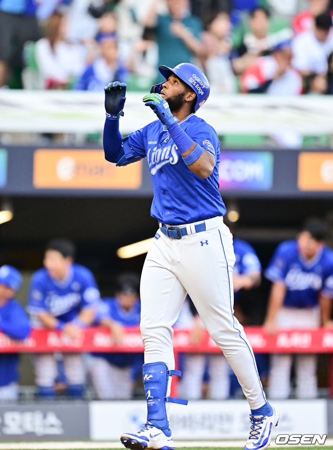 5회초 김영웅에게 2루타를 맞고 폭투, 희생플라이로 첫 실점을 한 김광현은 6회초 불의의 일격을 맞았다. 바깥쪽 슬라이더를 홈런 선두 디아즈가 강하게 잡아당겼고 타구는 우월 투런 홈런이 됐다. 시즌 22호 홈런을 날린 디아즈는 이로서 전 구단 상대 홈런 기록까지 달성했다.