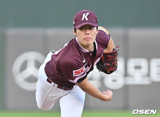이번 등판에서 김윤하는 초반 불안한 스타트를 보였다. 1회말 그는 장두성의 좌전안타에 이어 고승민에게 볼넷을 내주고, 빅터 레이예스에게 중견수 앞 안타를 허용해 무사 만루 위기를 자초했다. 그래도 윤동희에게 희생플라이를 내준 걸 제외하면 추가 실점 없이 이닝을 마쳤다.