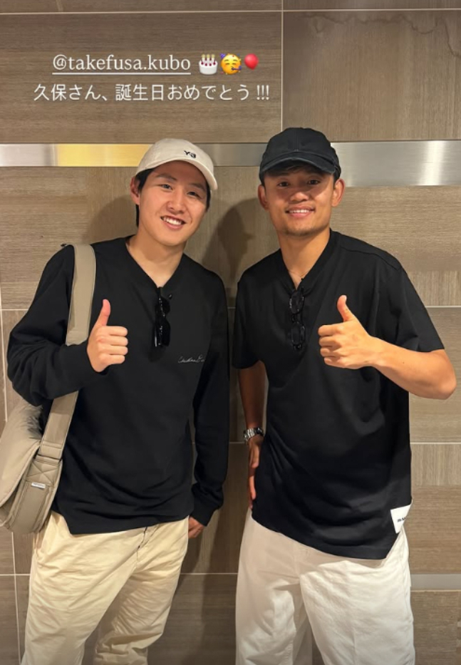 이강인은 5일 자신의 소셜 미디어(SNS)에 구보와 만난 사진과 함께 '생일 축하해요'라는 메시지를 올렸다. 구보는 6월 4일생이다.