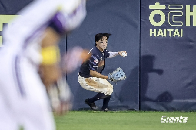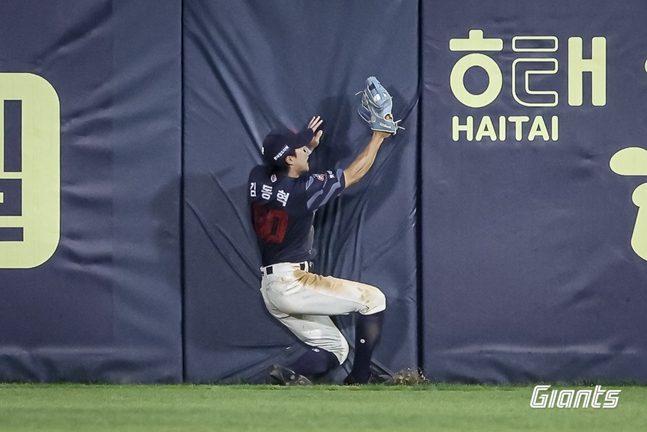 특히 이날 롯데는 4-2, 2점 차의 리드 상황에서 9회말 두산 김민석이 좌전 안타를 치며 출루했다. 다음 김인태가 롯데 마무리 김원중의 초구를 받아쳐 우익수 방면 워닝트랙으로 흐르는 큰 타구를 날렸다. 안타성 타구였지만 김동혁이 끝까지 펜스 쪽으로 쫓아갔고 몸을 날려잡아냈다.