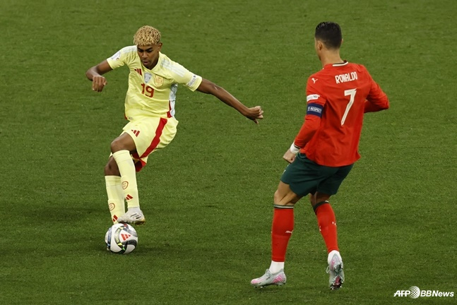 포르투갈이 5분 만에 맞받아쳤다. 멘데스가 페널티 박스 부근에서 드리블 돌파 후 강력한 왼발 슈팅으로 스페인의 오른쪽 골망을 흔들었다.