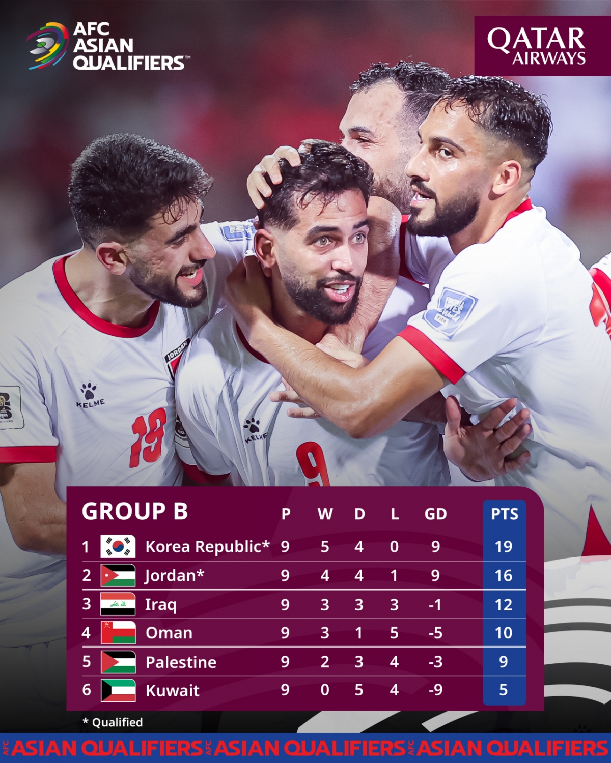 유일하게 4차 예선행 티켓이 미궁인 조는 한국이 속한 B조다. 이라크가 1장을 확보했고, 남은 4차 예선행 티켓을 두고 오만(승점 10), 팔레스타인(승점 9)이 경합을 펼치고 있다. 공교롭게도 두 팀은 중립 지역인 요르단 암만에서 최종전 맞대결을 펼친다. 지는 팀은 월드컵 꿈이 완전히 사라지고, 이기는 팀은 4차 예선을 통한 월드컵 본선 꿈을 이어갈 수 있다.
