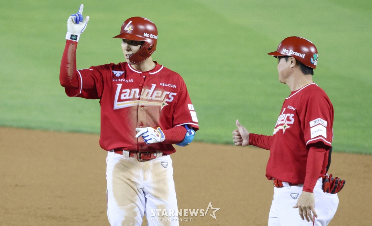 스포츠야구[포토] 김성욱 빵야, 윤재국 엄지척발행 : 2025.06.10 ・ 21:16잠실=김진경 대기자2025 신한 SOL Bank KBO리그 LG 트윈스 대 SSG 랜더스 경기가 10일 서울 잠실야구장에서 열렸다.SSG 김성욱이 8회초 1사 3루에서 1타점 적시타를 날리고 출루한 후 세리머니를 하고 있다.<저작권자 © 스타뉴스, 무단전재 및 재배포 금지>프로야구KBO에르난데스손주영LG_트윈스SSG_랜더스추천 기사김진경 대기자기자홈좋아요 스포츠-야구의 인기 급상승 뉴스스포츠-야구의 최신 뉴스