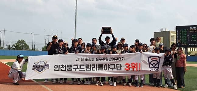 취미반이 출전한 제1회 호핀배 순수주말반야구대회에서 인천중구드림리틀야구단은 지난 7일 4강전에서 패했으나 선수들 모두 고른 실력을 발휘하며 3위에 올랐다.