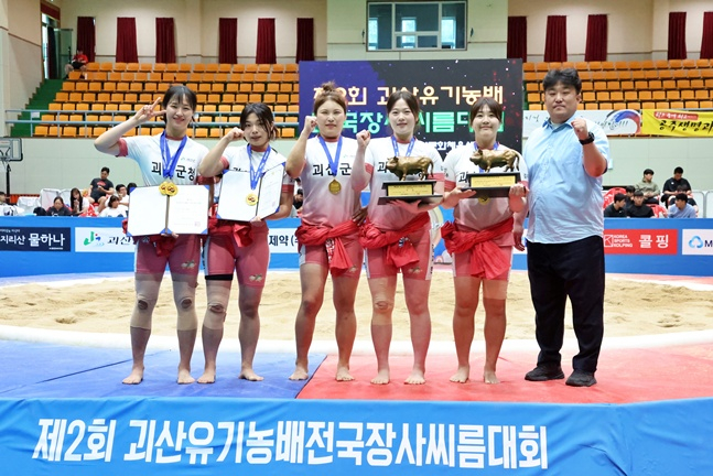 이광석 감독이 이끄는 괴산군청은 지난 11일 충북 괴산군 괴산문화체육센터에서 열린 '제2회 괴산유기농배전국장사씨름대회' 여자부 단체전 결승(팀간 5전 3선승제, 개인간 3전 2선제)에서 구례군청(전라남도)을 3-2로 누르고 홈 그라운드에서 올해 첫 우승을 따냈다고 대한씨름협회가 전했다.