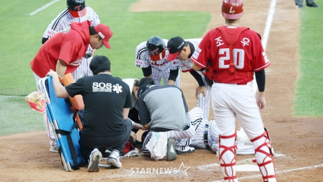 구본혁은 곧장 손을 감싸안고 쓰러졌고 고통을 호소했다. 좀처럼 일어나지 못하면서 급기야 잠실야구장 외야에서 구급차까지 투입됐다. 다행히 구본혁은 구급차까진 타지 않고 제 발로 걸어 나갔고, LG는 송찬의로 교체해 경기를 이어갔다. 수비 포지션은 1루에 있던 이영빈이 유격수로 옮겼고, 송찬의가 1루수로 투입됐다.