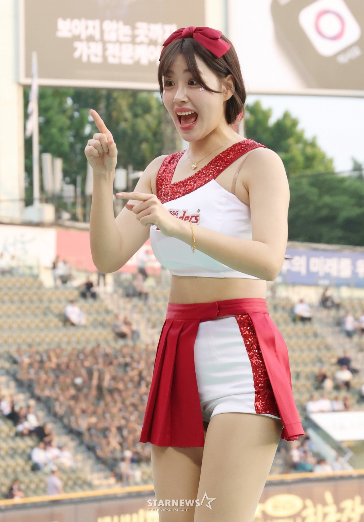스포츠야구[포토] 김도아 '됴아됴아 역전타야'발행 : 2025.06.12 ・ 19:32잠실=김진경 대기자2025 신한 SOL Bank KBO리그 LG 트윈스 대 SSG 랜더스 경기가 12일 서울 잠실야구장에서 열렸다.SSG 치어리더 김도아가 상큼한 응원을 하고 있다.<저작권자 © 스타뉴스, 무단전재 및 재배포 금지>브리핑요약 없이도 가볍게 읽으실 수 있는 짧은 뉴스입니다.추천 기사김진경 대기자기자홈좋아요스포츠-야구의 인기 급상승 뉴스스포츠-야구의 최신 뉴스