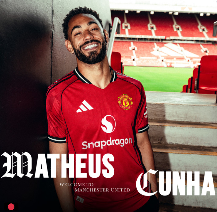 황희찬(29)의 울버햄튼 동료였던 마테우스 쿠냐(26)가 맨체스터 유나이티드 유니폼을 입었다.