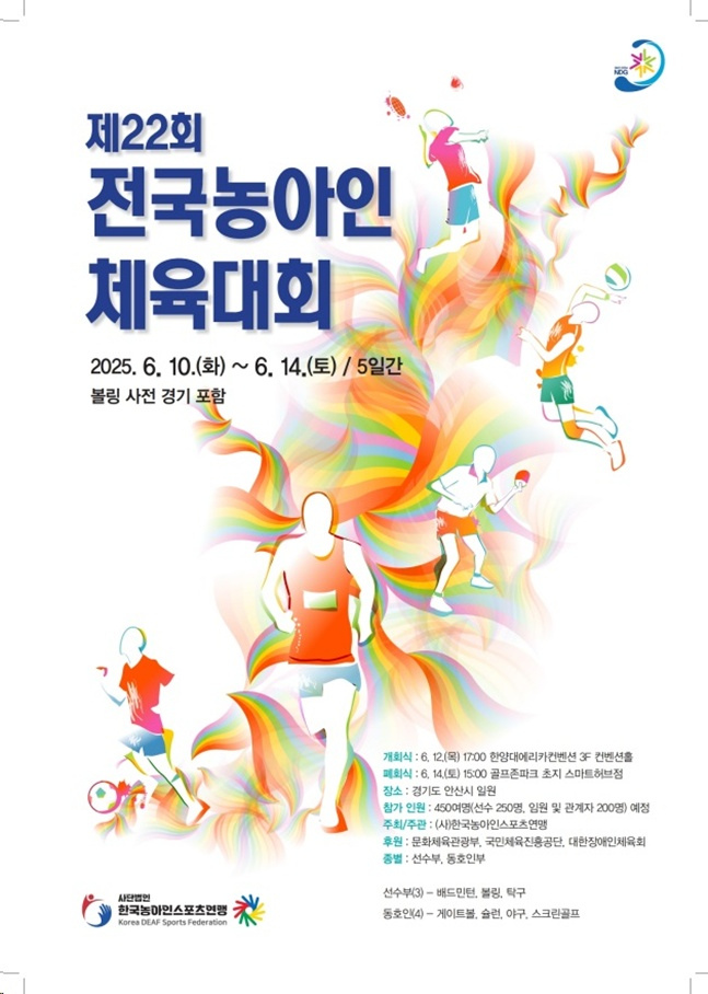 사단법인 한국농아인스포츠연맹에 따르면 이번 대회에는 선수부(배드민턴, 볼링, 탁구)와 동호인부(게이트볼, 슐런, 야구, 스크린골프)로 나눠 7개 종목이 개최된다. 총 450여 명(선수 250명, 임원 및 관계자 200명)이 참여해 오는 14일까지 안산시 일원에서 열띤 경쟁을 펼친다.