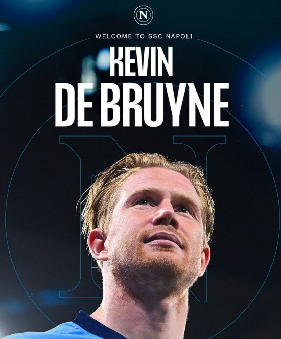 이탈리아 '디 마르지오'는 이날 "이탈리아에 도착한 더 브라위너는 나폴리 계약서에 서명했다. 그는 이제 나폴리 선수다"라고 전했다.