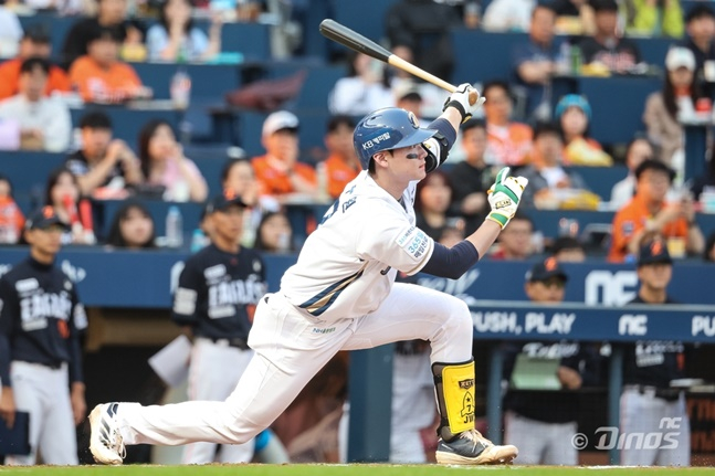 이날 NC는 김주원(유격수)-권희동(좌익수)-박민우(2루수)-맷 데이비슨(1루수)-박건우(우익수)-손아섭(지명타자)-천재환(중견수)-김형준(포수)-김휘집(3루수)이 스타팅으로 나섰다. 주로 2번 타자로 나오던 김주원이 1번으로 올라왔는데, 이호준 NC 감독은 "주원이가 좋으면 당분간 이렇게 갈 것 같다"고 예고했다.
