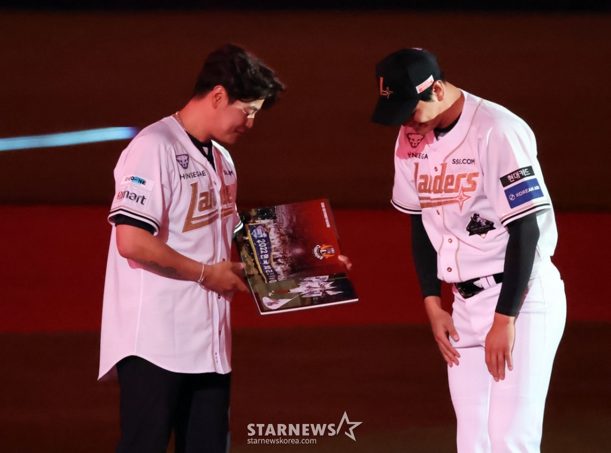 스포츠야구[★화보]'랜더스 사진앨범 받은 추신수' 추추트레인 은퇴식발행 : 2025.06.14 ・ 21:30인천=강영조 선임기자기나긴 야구선수 여정을 마무리한 추신수가 14일 인천SSG랜서스필드에서 열리는 KBO리그 롯데자이언츠와 SSG랜더스의 경기가 끝나고 진행된 은퇴식에서 김광현으로부터 랜더스사진앨범을 받고 있다. 2025.06.14.<저작권자 © 스타뉴스, 무단전재 및 재배포 금지>랜더스추신수트레인사진앨범인천추천 기사강영조 선임기자기자홈좋아요 스포츠-야구의 인기 급상승 뉴스스포츠-야구의 최신 뉴스
