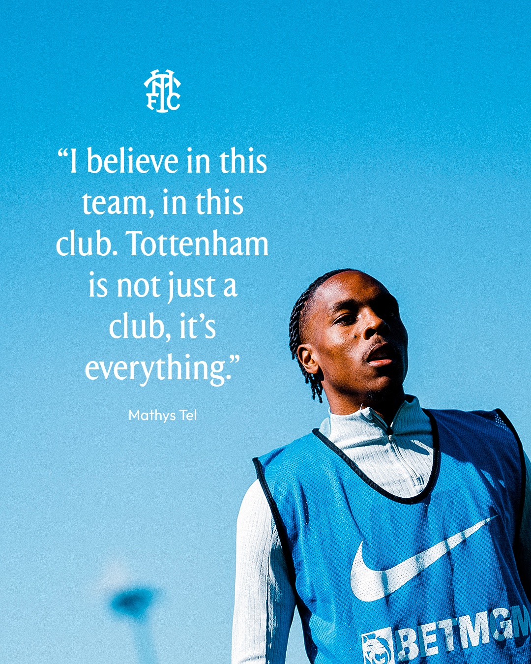 더불어 토트넘은 "텔은 잉글랜드카라바오컵(리그컵) 리버풀전에서 교체 출전해 토트넘 데뷔전을 치렀다. 잉글랜드축구협회(FA)컵 아스톤 빌라전에서 토트넘 첫 골을 기록했다. 이 다재다능한 공격수는 지난 시즌 공식 20경기에서 3골을 넣었다"고 소개했다.