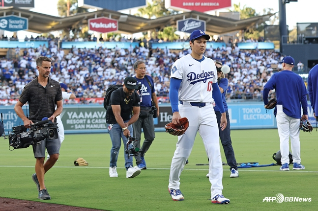 오타니는 17일(한국시간) 미국 캘리포니아주 로스앤젤레스에 위치한 다저스타디움에서 열린 샌디에이고 파드리스와 홈 4연전 가운데 첫 경기에 선발 등판해 1이닝 2피안타 1실점을 기록했다. 28개의 공을 던진 오타니의 최고 구속은 시속 100.2마일(약 161.3㎞)을 기록했다. 공이 다소 날렸고 스트라이크는 16개였다.