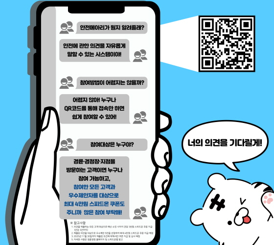 경륜·경정총괄본부는 안전 메아리를 통해 영업장 안전과 관련된 의견을 제출하는 모든 고객을 대상으로 스피드온 이용 쿠폰을 지급(예산 한도 내)하고, 그중 우수 제안 9건을 선정하여 최대 4만 원 상당의 스피드온 쿠폰을 지급할 예정이다.