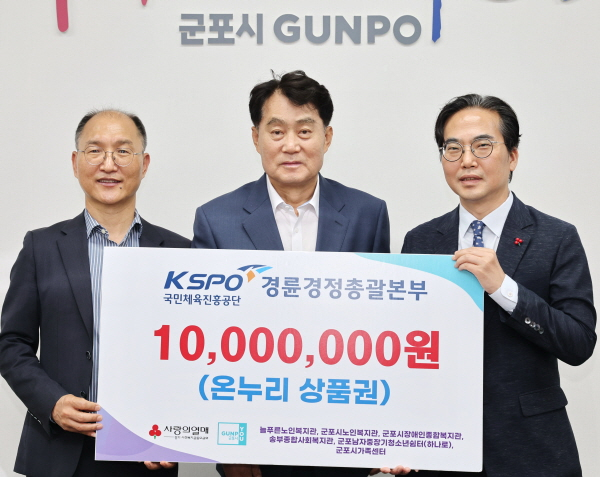 국민체육진흥공단 경륜경정총괄본부가 지난 13일, 군포시청을 찾아 군포시 관내 복지기관 6곳에 1,000만 원 상당의 온누리상품권을 전달했다.