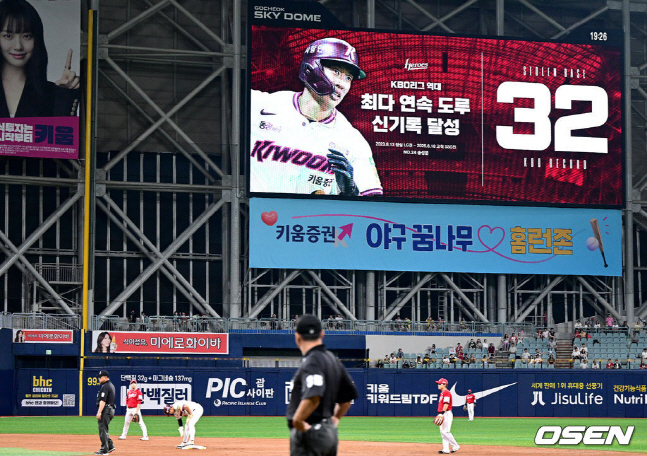 타선에서 힘을 보탰다. 3회 선두 타자 송성문이 우전 안타로 출루해 좌투수 김건우를 상대로도 도루를 달성했다. 이로써 송성문은 32연속 도루를 성공시켜 자신이 보유한 KBO 연속 도루 기록을 또 늘려갔다. 이어 임지열의 우익수 뜬공 때 태그업해 3루로 향한 송성문은 김건우의 폭투로 손쉽게 동점 득점을 해냈다. 송성문의 발로 만든 귀중한 1점이었다. 이어 이주형이 몸에 맞는 공으로 출루했고 최주환의 2루타 때 홈을 파고 들었다. 2-1 역전.