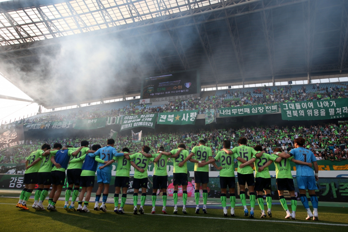 이날 전북은 전반 4분 만에 김도윤에게 선제골을 실점한 데 이어 전반 30분 싸박에게 추가골까지 허용했다. 14경기 연속 이어지던 무패행진에 마침표가 찍히는 듯한 위기감이 감돌았다. 전북은 그러나 후반 6분 '국가대표 미드필더' 김진규의 프리킥 만회골로 추격의 불씨를 지피더니, 후반 26분 콤파뇨의 헤더로 기어코 동점을 만들었다. 여기에서 그치지 않았다. 후반 43분엔 이승우가 상대 자책골을 유도해 냈다. 0-2로 뒤지던 경기를 3-2로 뒤집은 대역전 드라마에 전주성은 그야말로 열광의 도가니가 됐다.