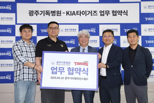 마지막으로 19일 오후 광주-기아 챔피언스 필드에서 KIA 타이거즈 심재학 단장, 설진규 지원실장, 광주기독병원 이승욱 원장이 참석한 가운데 광주 지역 소아 청소년들의 건강 증진을 위한 광주기독병원 소아청소년과 지정병원 협약식을 가졌다.