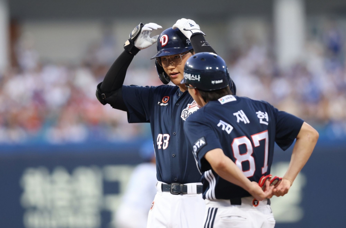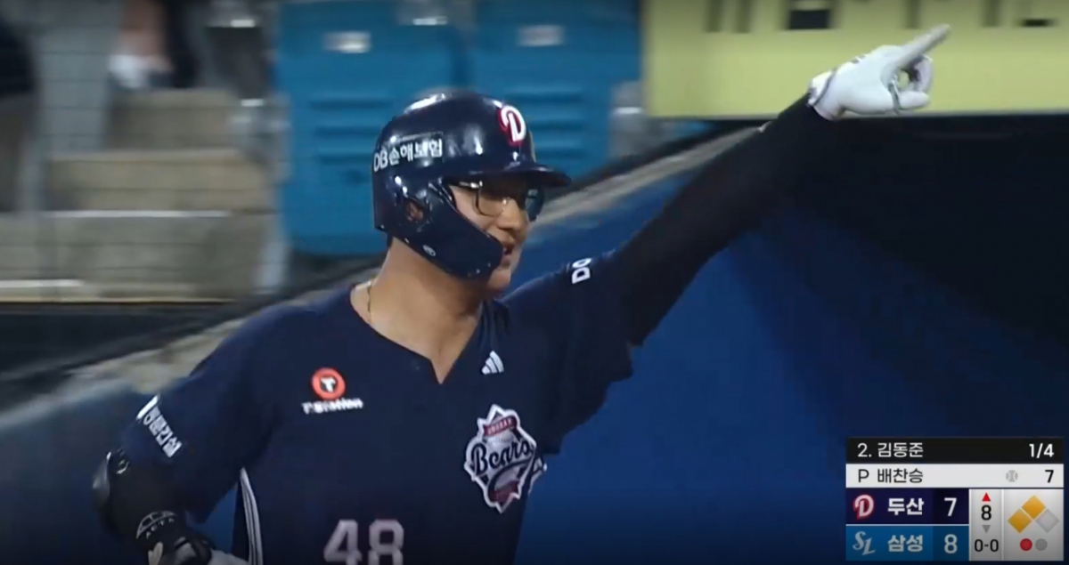 하지만 두산의 뒷심은 무서웠다. 8회말. 마운드에는 '고졸 신인' 배찬승이 서 있었다. 선두타자 강승호가 몸에 맞는 볼로 출루한 뒤 정수빈의 안타로 무사 1, 2루 기회를 잡았다.
